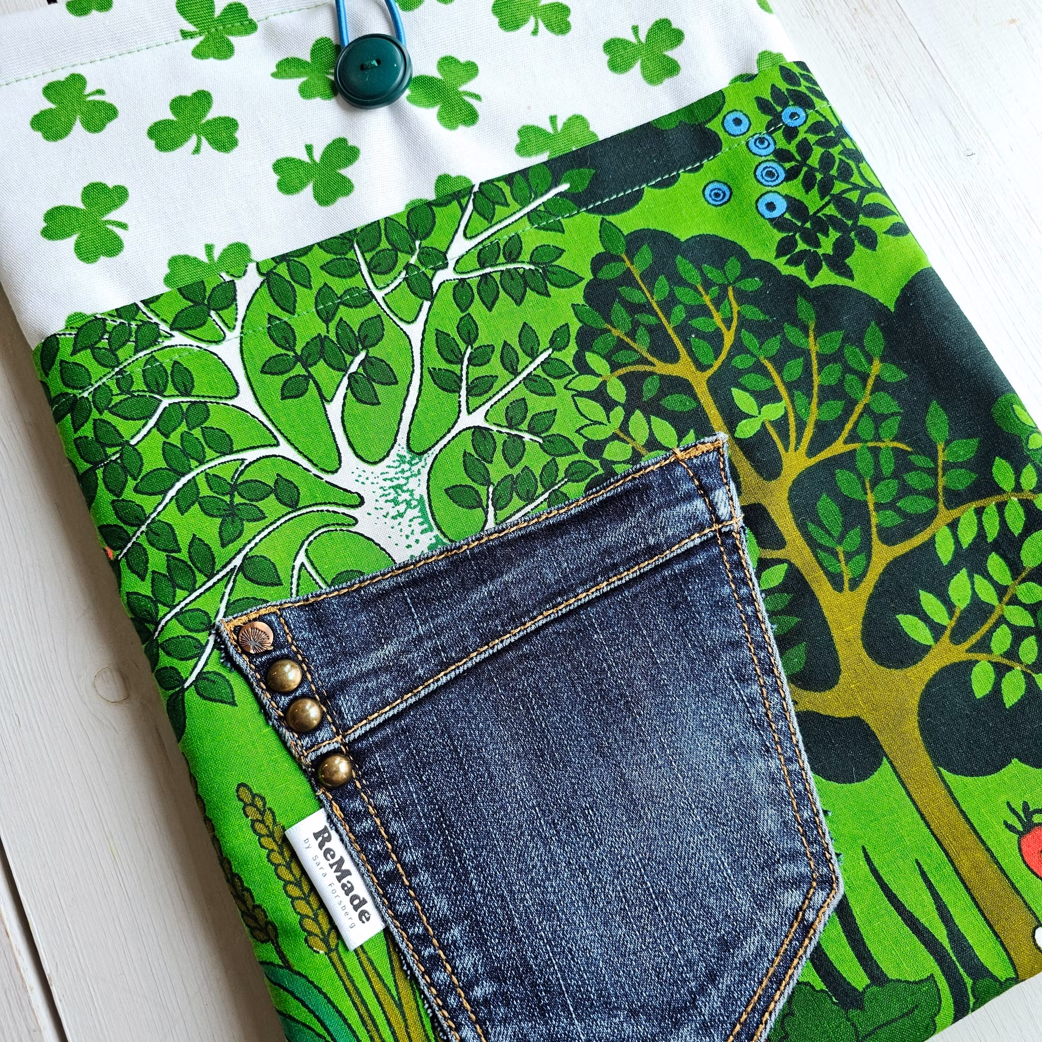 Fodralet är vadderat för extra skydd och har en praktisk ytterficka samt en återbrukad jeansficka där du kan förvara dina pennor. Stängs enkelt med en resårsnodd och en färgglad knapp – en liten detalj som gör stor skillnad!