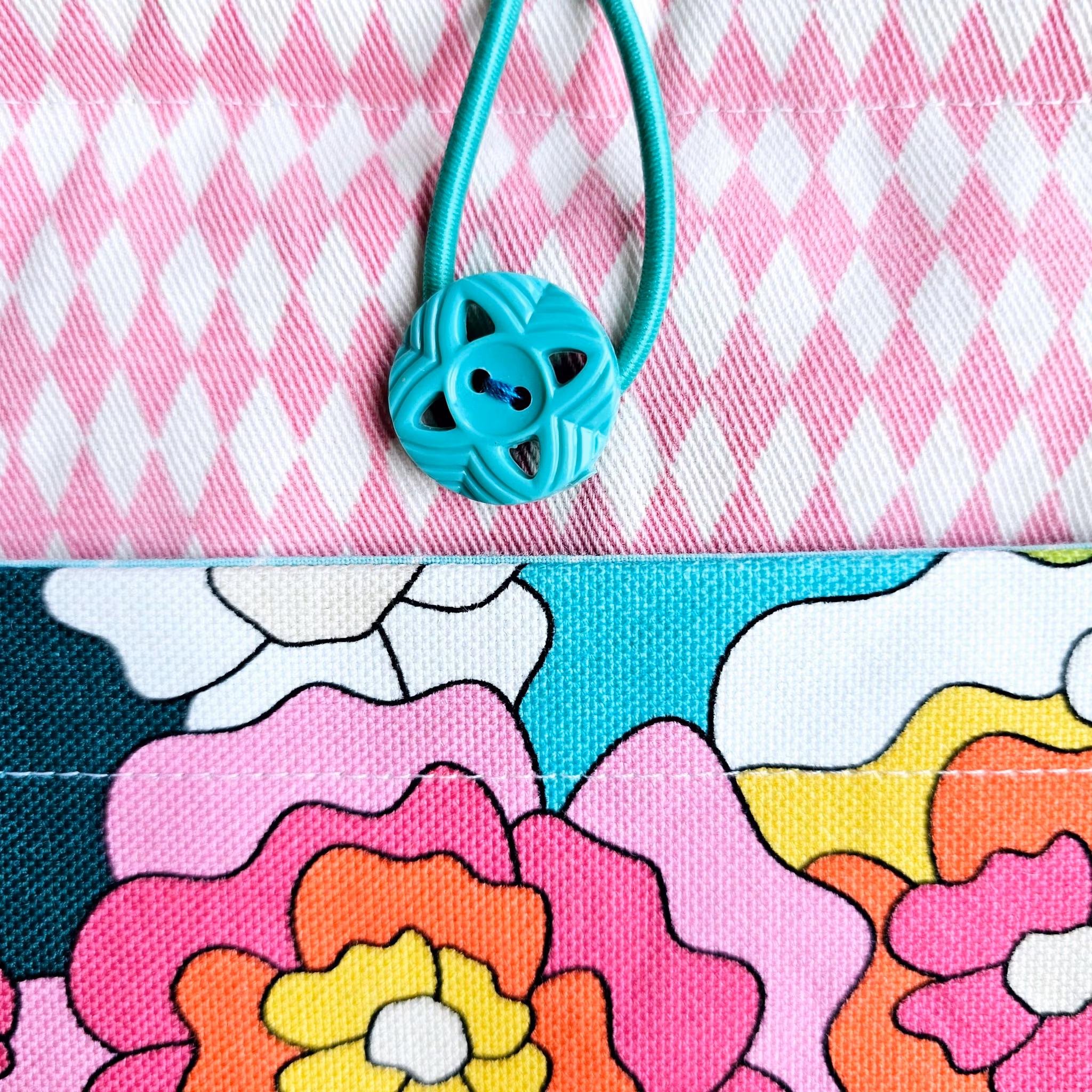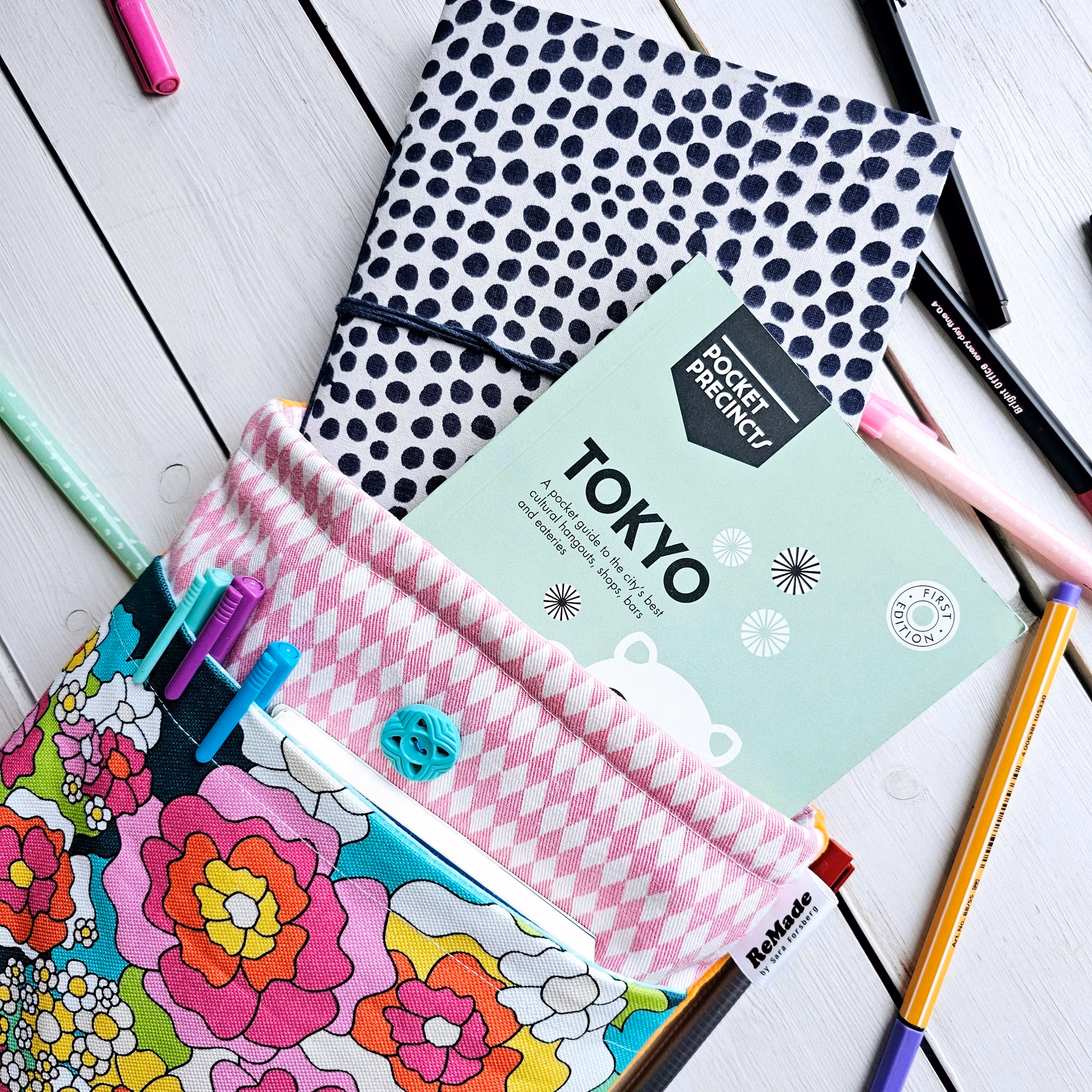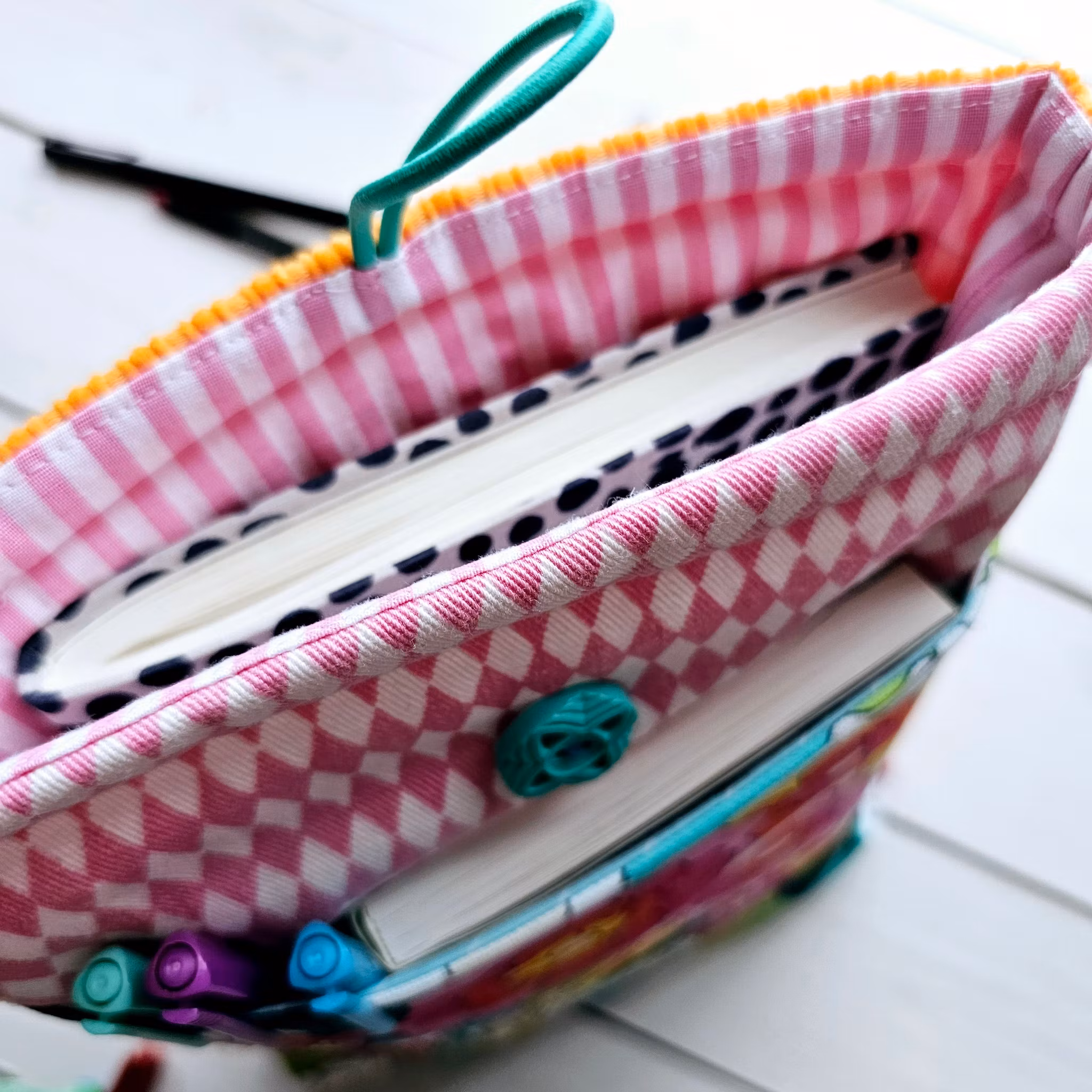 Fodralet är vadderat för extra skydd och har en praktisk ytterficka där du kan förvara dina pennor och papper. Stängs enkelt med en resårsnodd och en färgglad knapp – en liten detalj som gör stor skillnad!