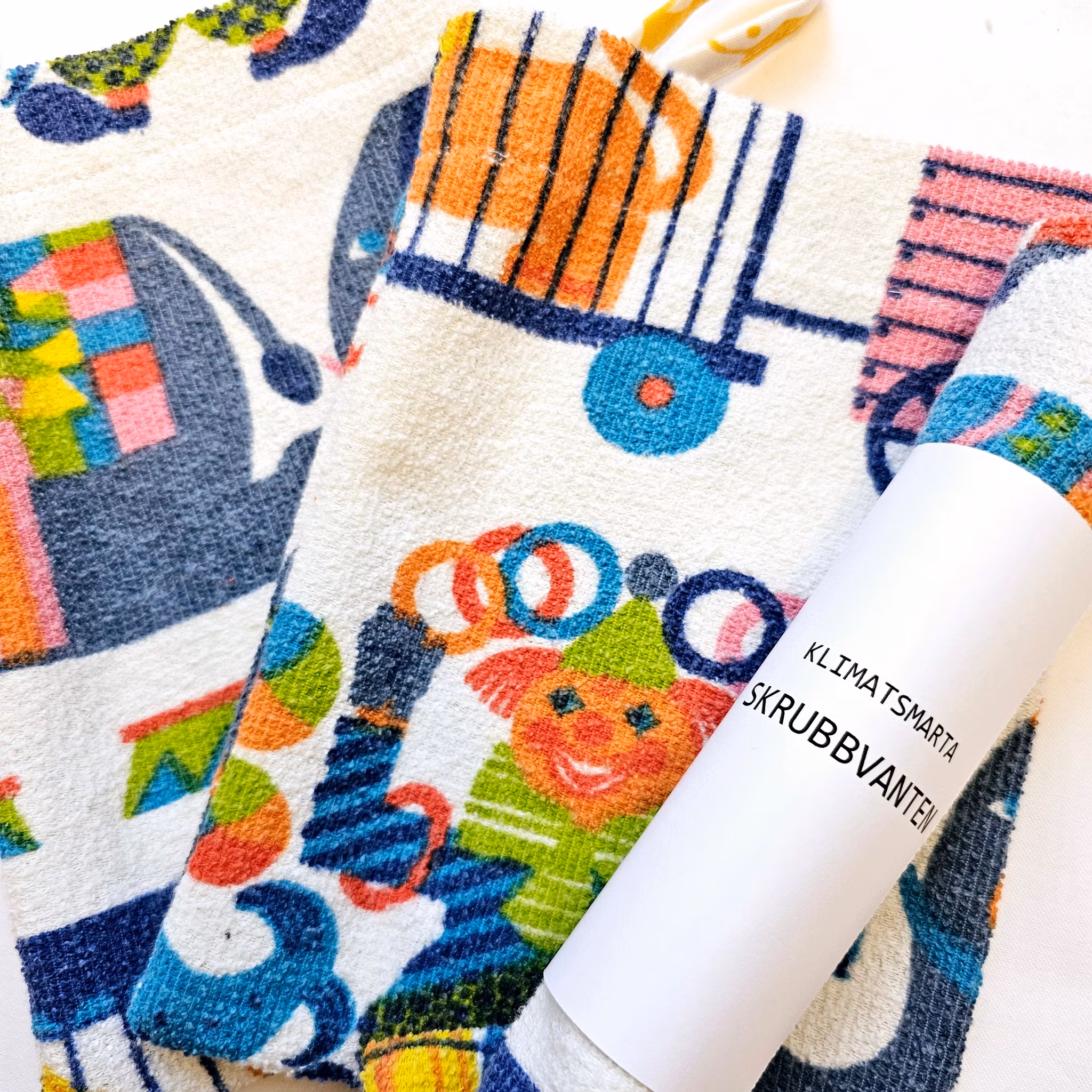 Våra skrubbvantar är tillverkade av frotté, vilket ger en härlig skrubbeffekt. Känn hur smuts och gamla hudceller försvinner utan att behöva använda plastförpackade peelingprodukter! Spara både pengar och planeten – det är en win-win!