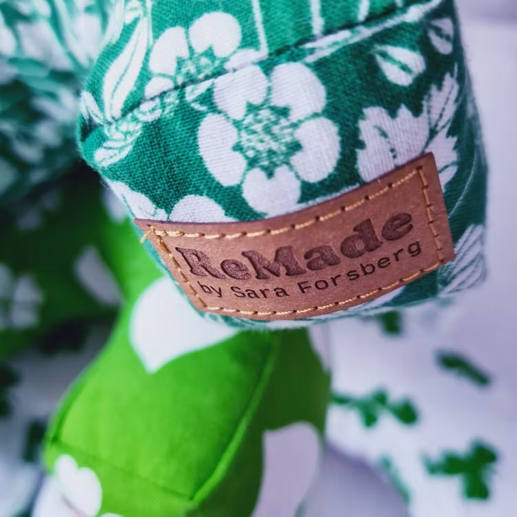Tillverkad av återbrukad bomullstyg och fylld med återbrukad polyestervadd från bla kasserade hotellkuddar.
