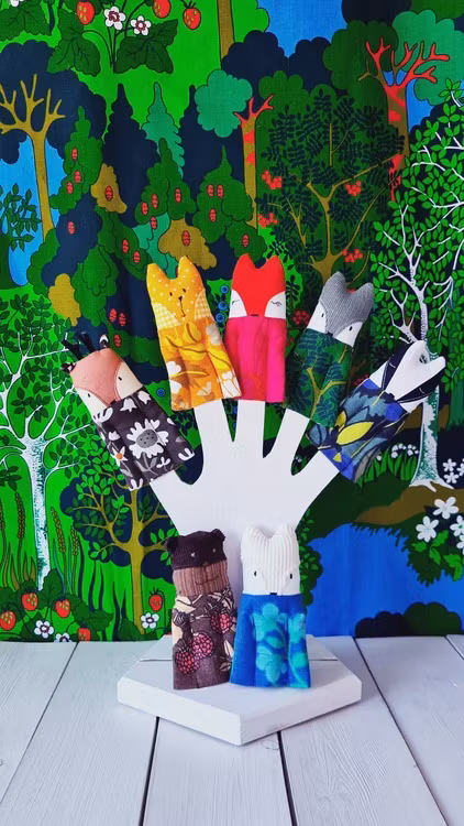 De populära skogsdjuren finns nu även som fingerdocka! Fungerar även som ett litet mjukisdjur!