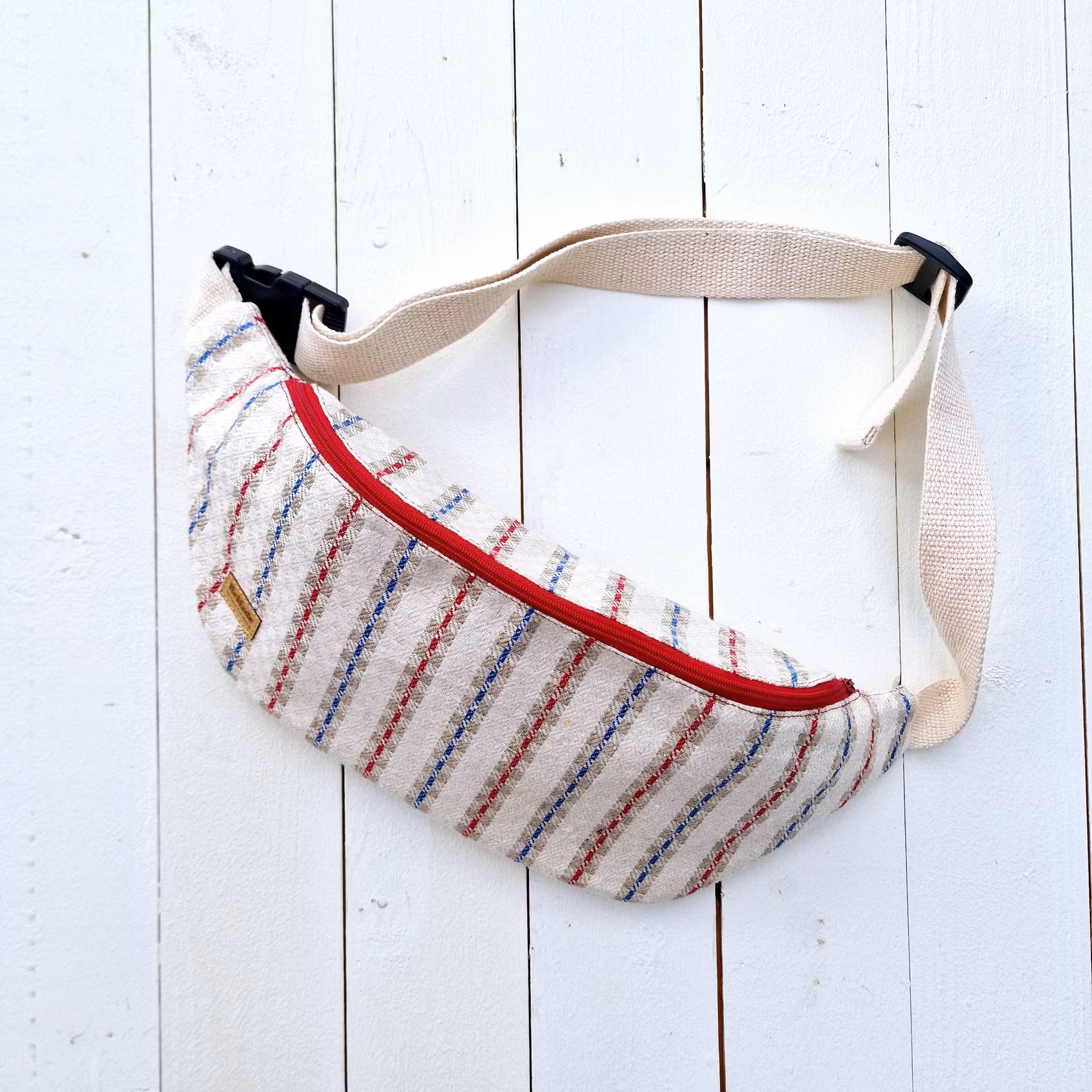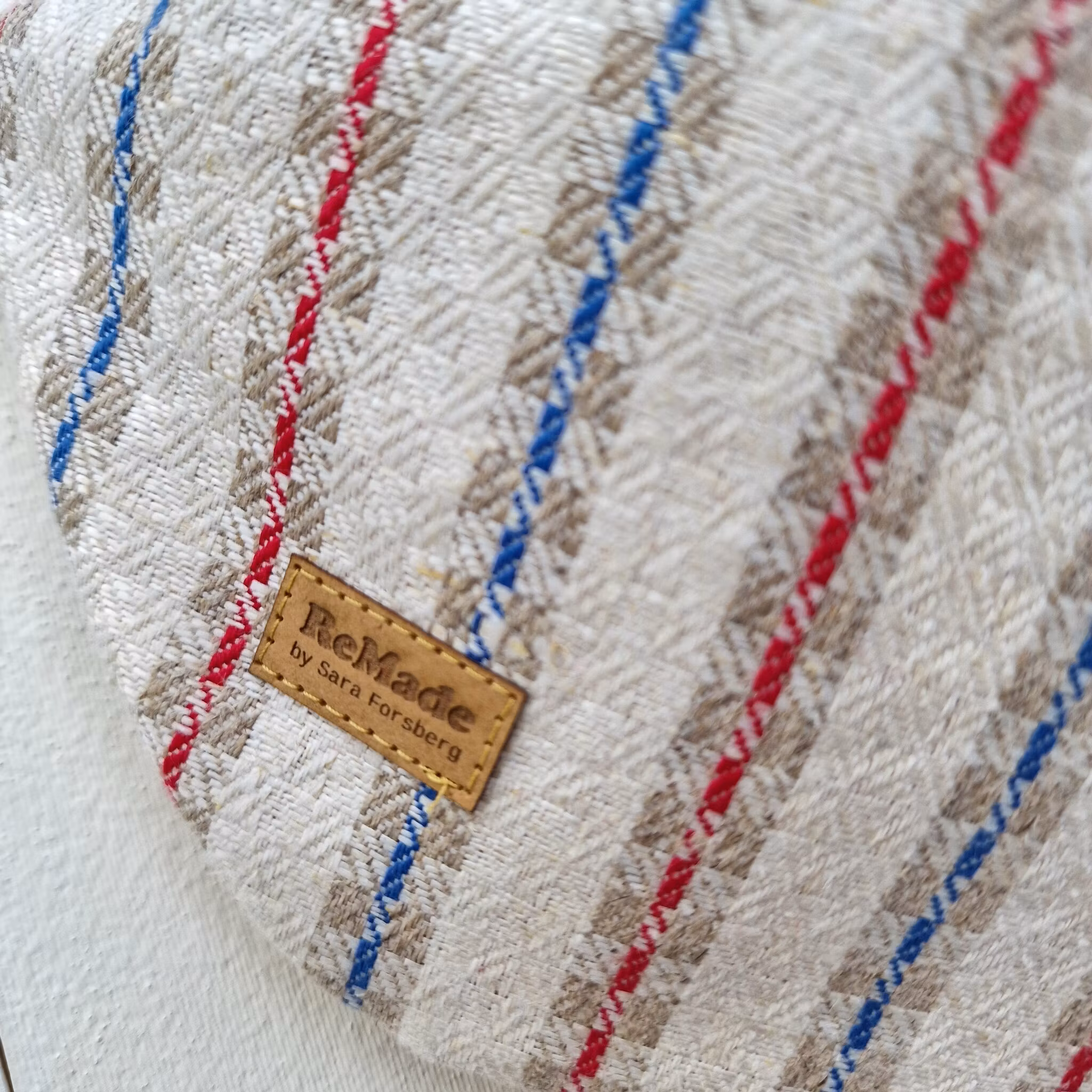 Den här magväskan är en specialdesignad modell och uppsydd av ett unikt handvävt tyg från dalarna. Det kan vara handvävt av mig nytt och oanvänt, eller vävt av någon av mina släktingar eller så kan det vara en återbrukad bit från tex ett bolster eller dräktplagg. Lika fin på insidan som utsidan!