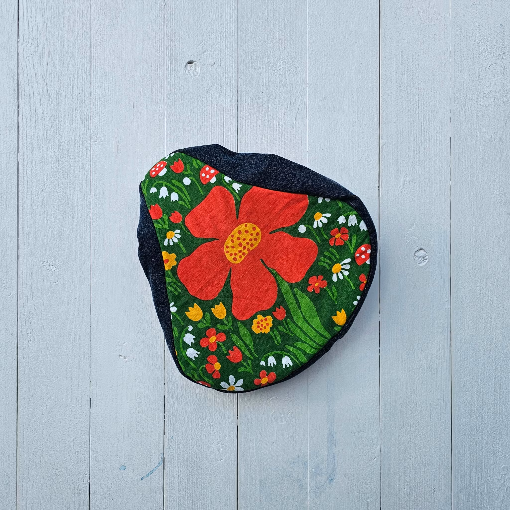 Ett färgglatt fluffigt värmande sadelskydd för alla höstens kyliga cykelturer
