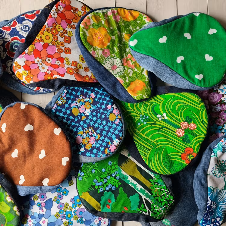 Ett färgglatt fluffigt värmande sadelskydd för alla höstens kyliga cykelturer