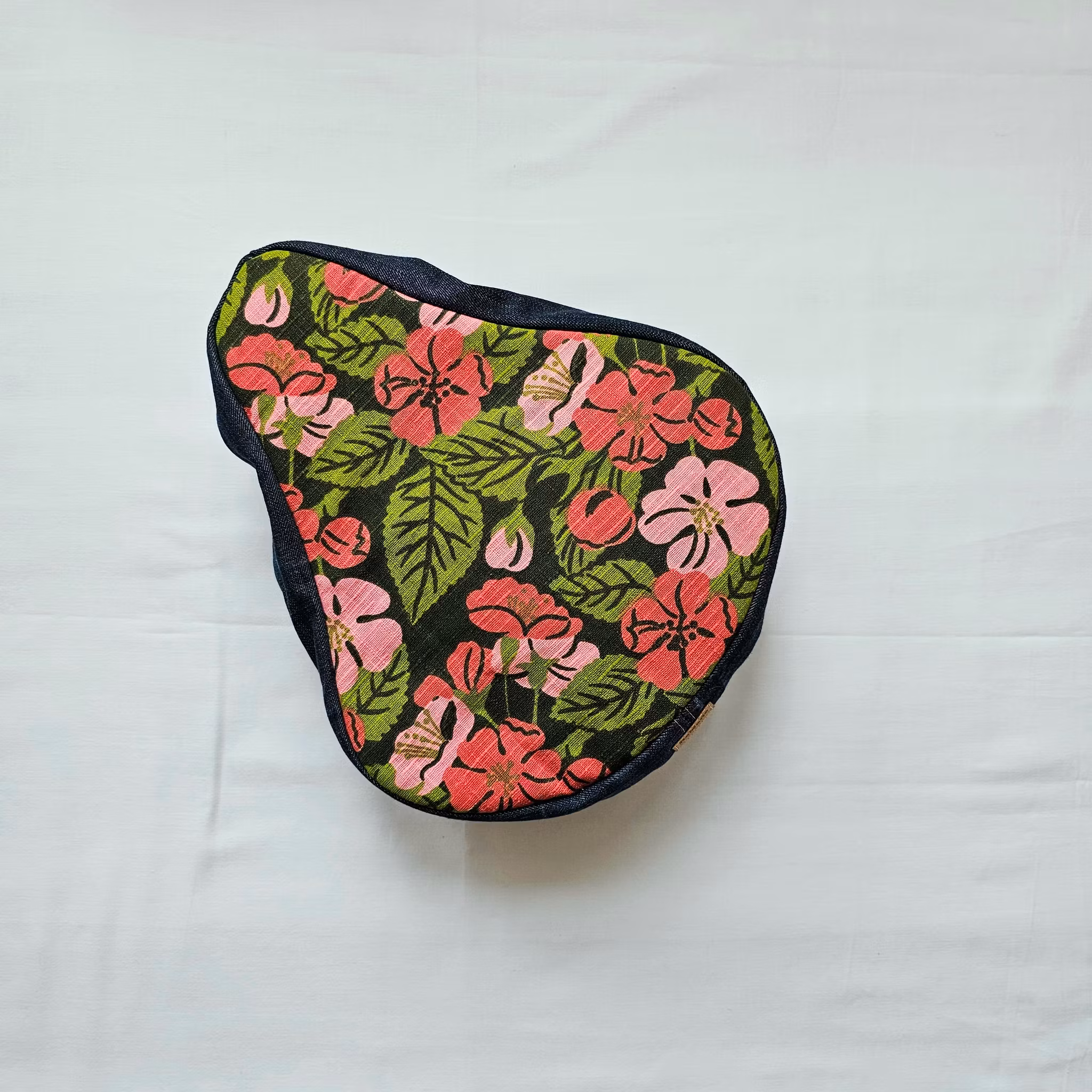 Ett färgglatt fluffigt värmande sadelskydd för alla höstens kyliga cykelturer